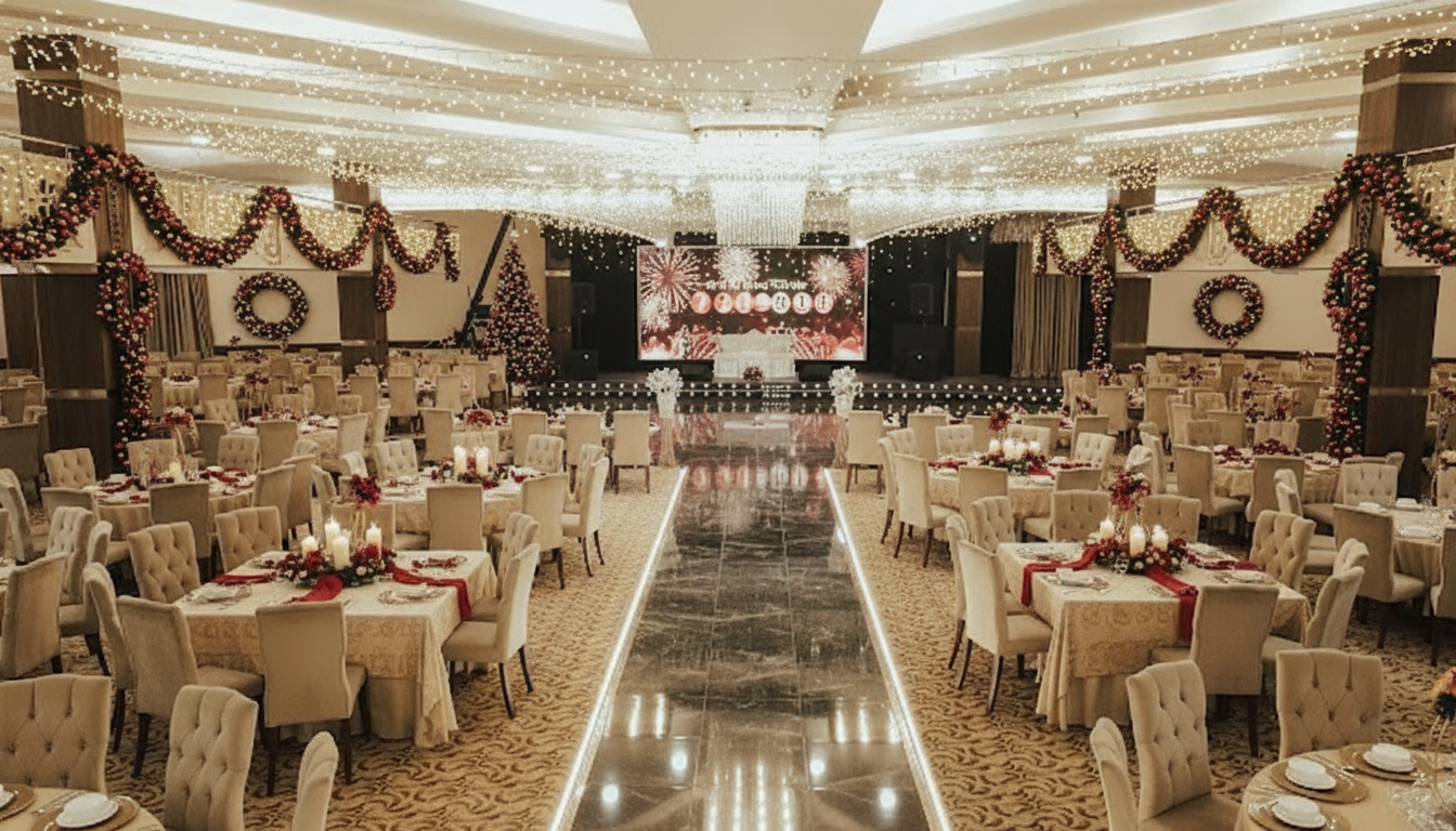 Cevahir Balo Salonu, geniş ve zarif salon düzeni, modern sahne altyapısı ve kusursuz servis anlayışıyla yılbaşı gecesinin en özel adresi olacak.